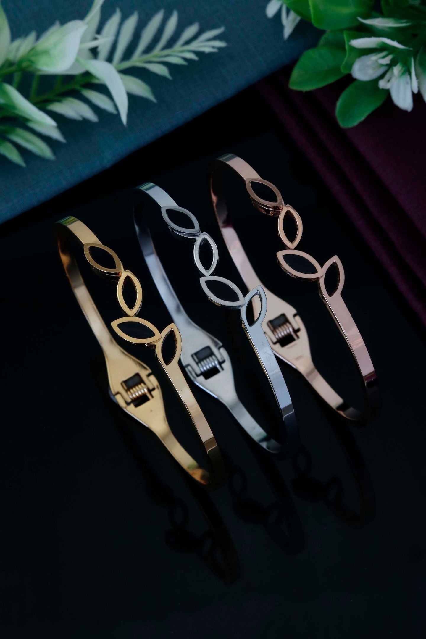 Elegant Leaf Line Cuff Bracelet