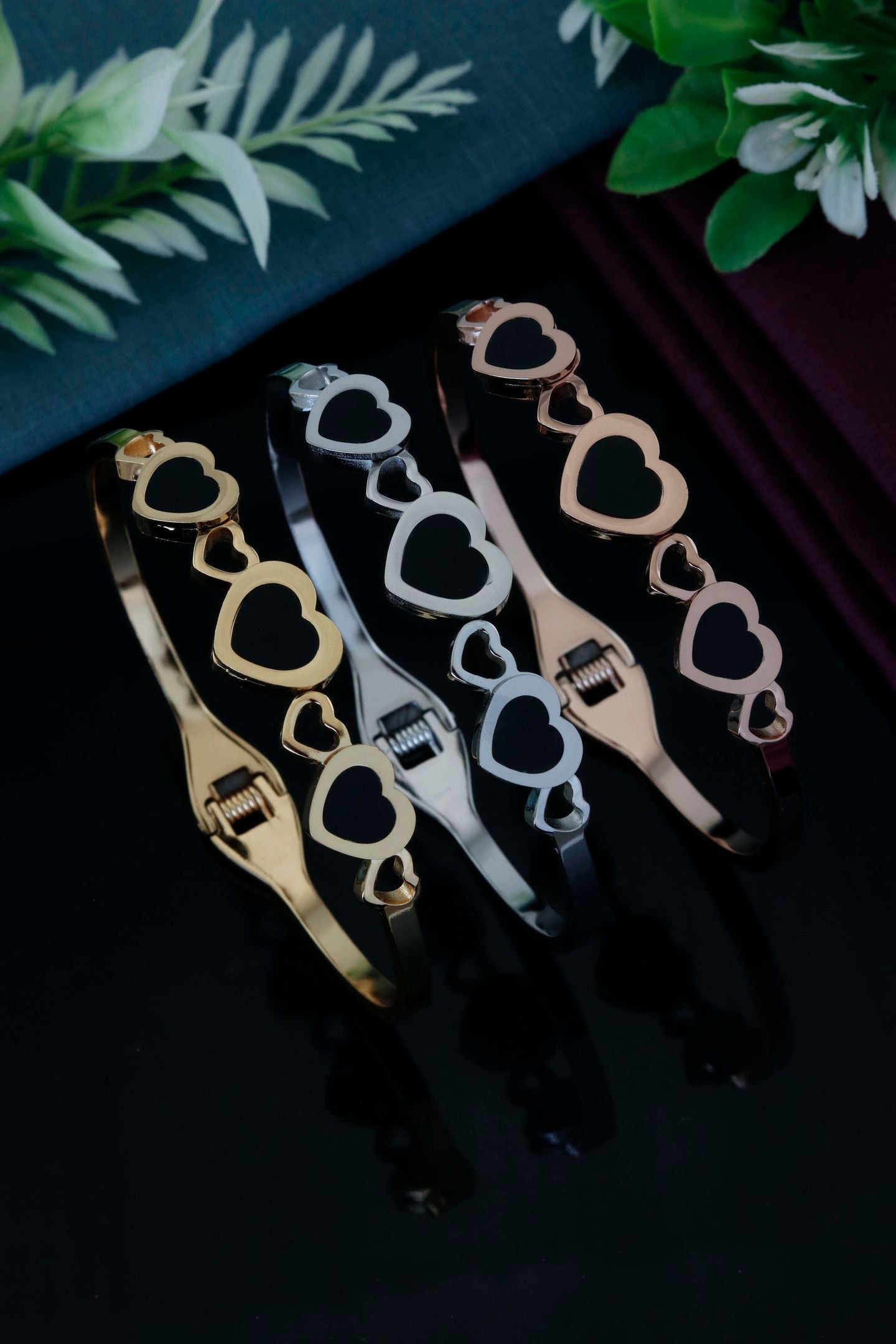 This elegant cuff bracelet features a sequence of open heart motifs that beautifully represent love and harmony. Crafted with a high-polish finish, it offers a sleek and contemporary look. The adjustable open cuff ensures a comfortable fit for everyday wear.